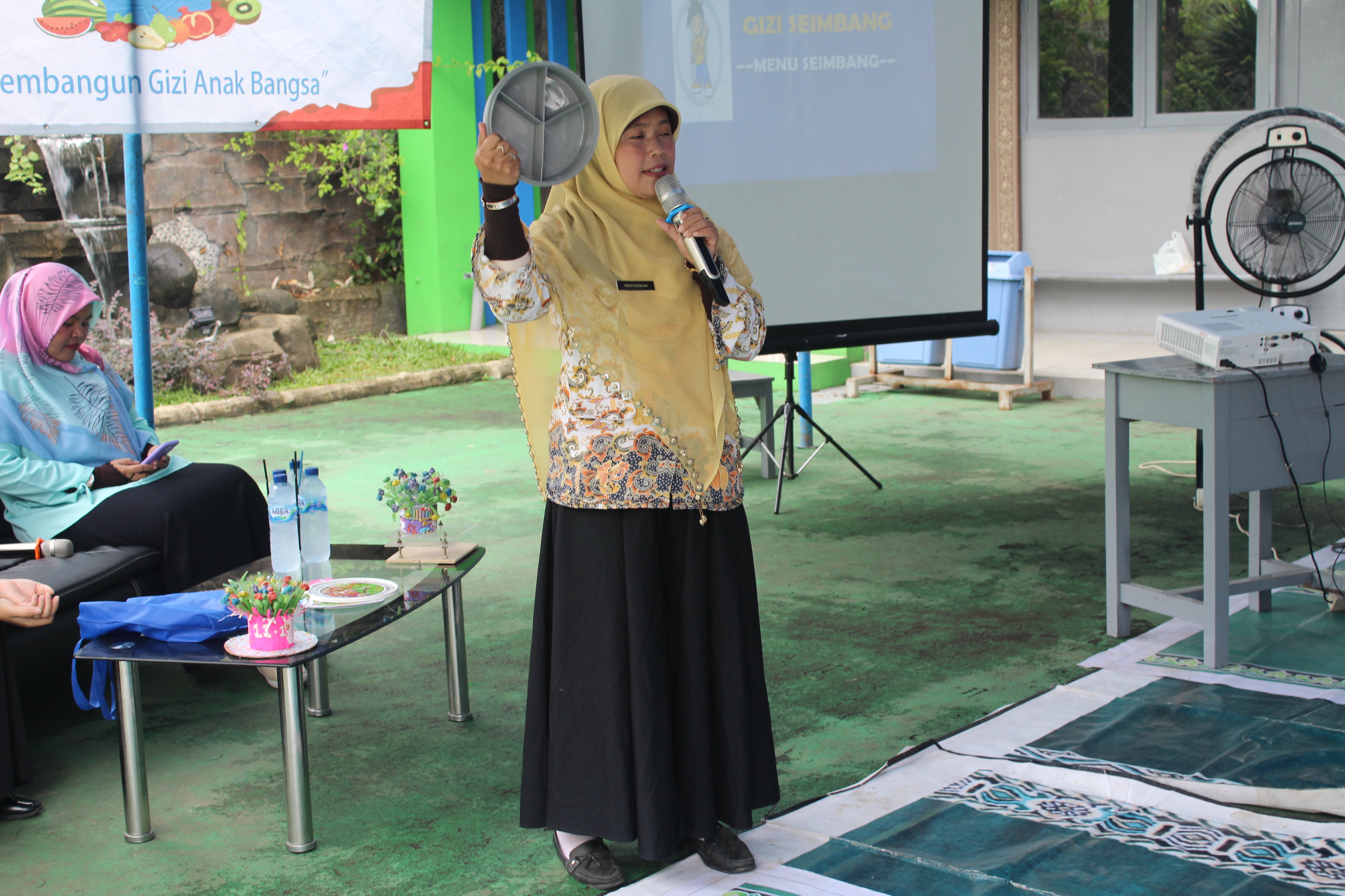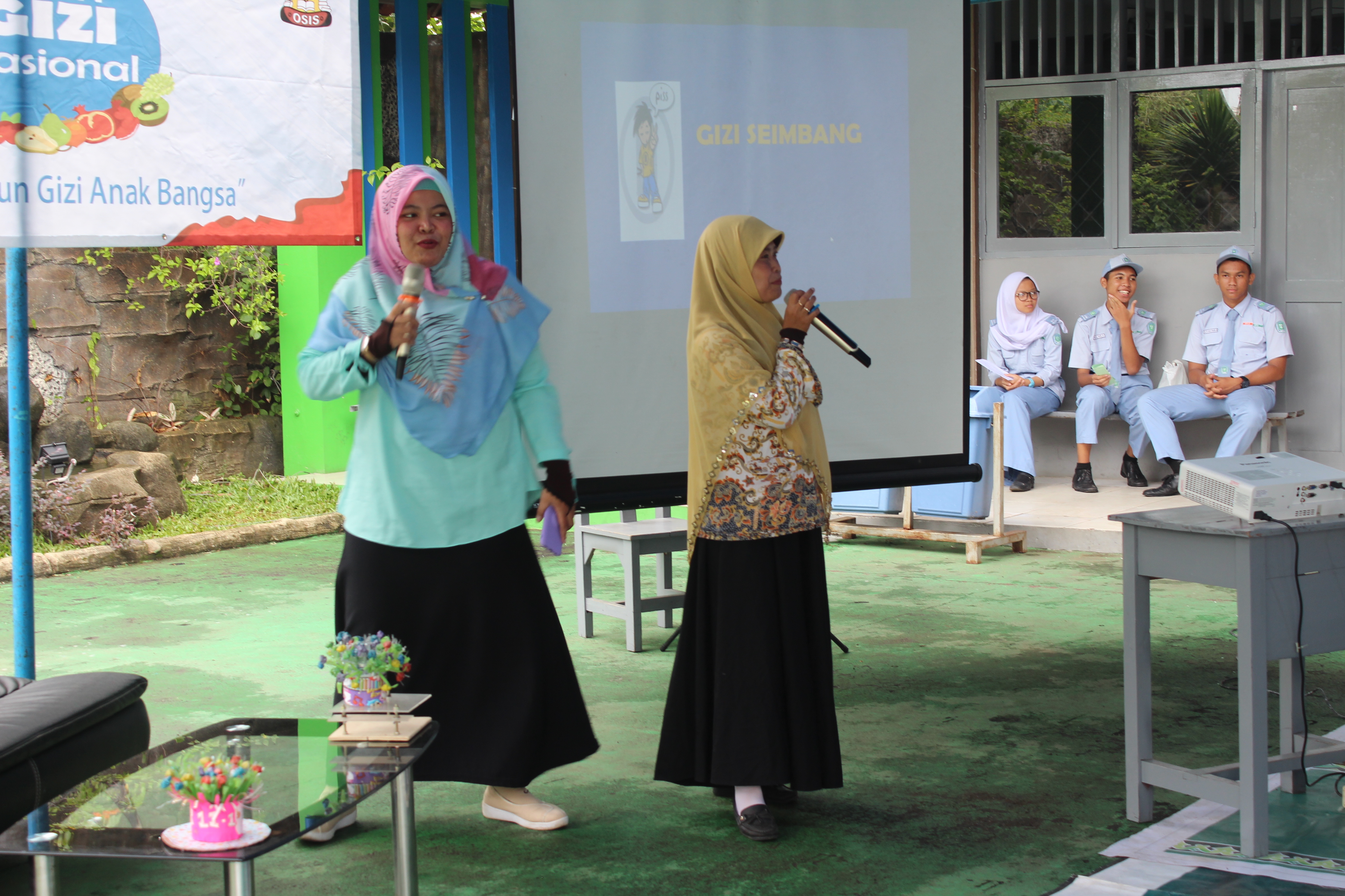 Kemudian narasumber dari Dokter Ahli Gizi Puskesmas Sawangan memberikan edukasi terkait gizi kepada seluruh siswa. Beberapa siswa nampak maju ke depan untuk ikut berpartispasi memberikn edukasi di depan teman-temannya.